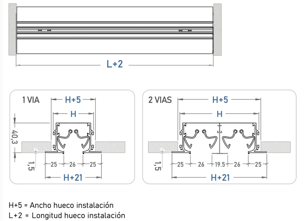 • Opción: Lamas orientables de color blanco, negro o plata anodizado.