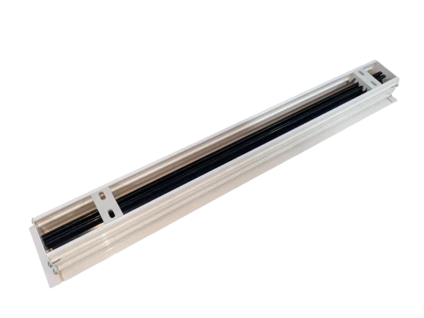 Difusor lineal oculto con aletas regulables para modificar la dirección del aire MA35O, disponible en 1 ó 2 vías y estructura de aluminio extruido. Posibilidad de formar líneas continuas uniendo varias unidades. Indicado para impulsión y retorno.